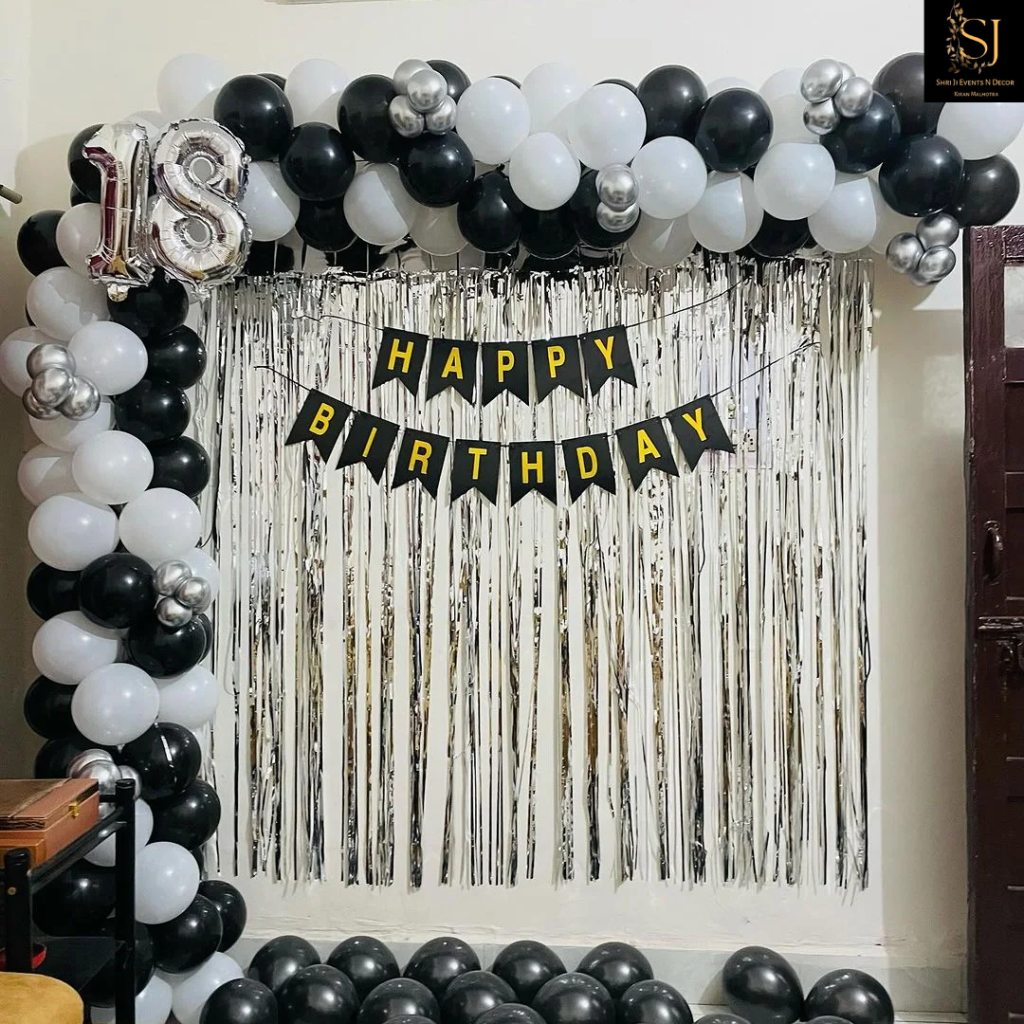 This Balloon Birthday Decoration in Delhi by Shiriji Events & Decor is designed for simple, elegant, and budget-friendly birthday celebrations. The combination of balloon arrangements, foil banner, number balloon, and silver tinsel backdrop helps create a neat and visually pleasing setup for room decorations. Suitable for small gatherings, this decoration offers a balanced look that can be adjusted based on space and personal preferences.