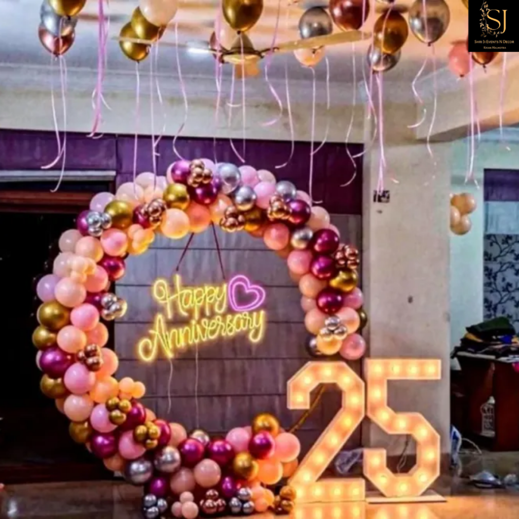 Shriji Events n Decor provides balloons, ribbons, foil letters, and decorative elements customized for your anniversary in Delhi NCR.